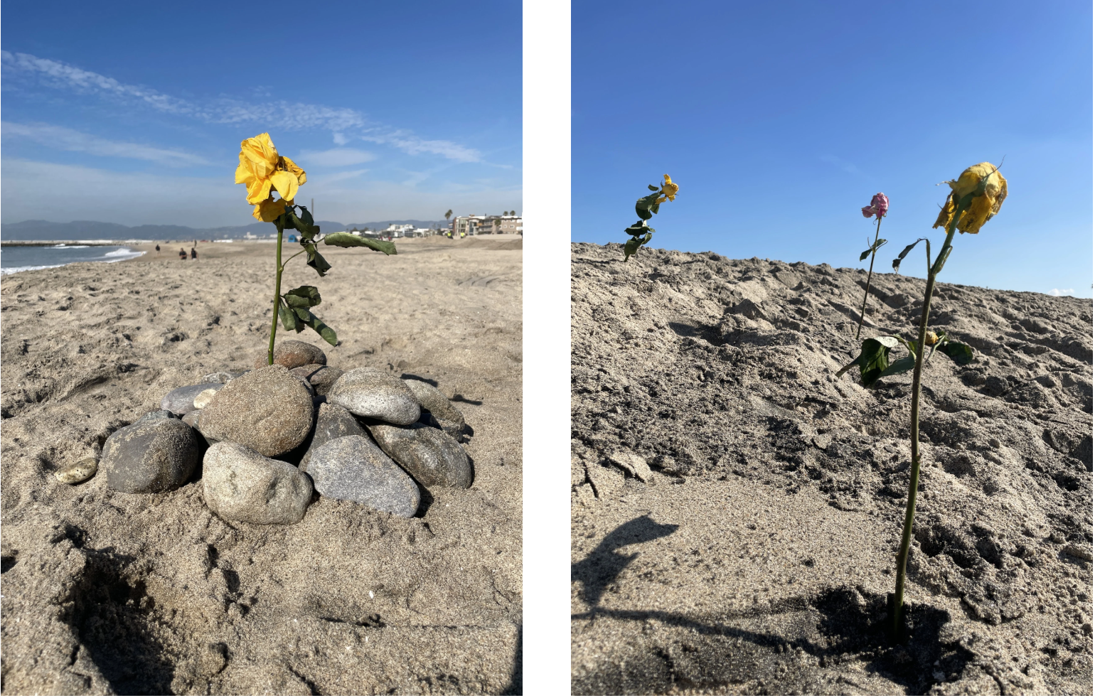 A few days after my journey, I found out that the name of the song that was playing during my journey was called Lineage of the Rose. And the full lyrics? “A ROSE BLOOMS when she is ready. Not a moment too soon.” I never consciously heard the part the part about the rose, but I was floored by the literal symbolism and clear guidance I was receiving... I was being led step by step into the beautiful unknown and like Alice in Wonderland and her rabbit, all I had to do was follow the rose. That same day, I went to the beach with my sister’s dog. She suddenly bolted down the shoreline, and when I caught up, I found myself standing in a circle of roses planted in the sand. It was almost too much magic and synchronicity for my brain to hold and I burst into tears of gratitude for the gift I’d been given.